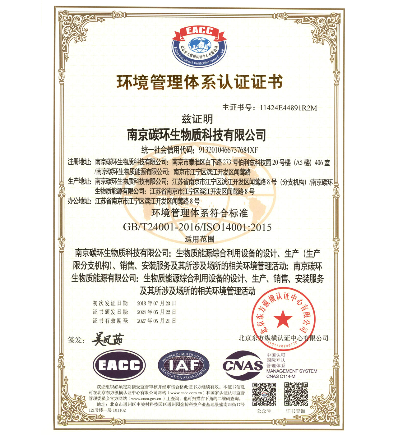 南京碳環(huán)生物質科技有限公司還有:環(huán)保工程總承包資質、壓力管道安裝資質、機電設備安裝資質等。