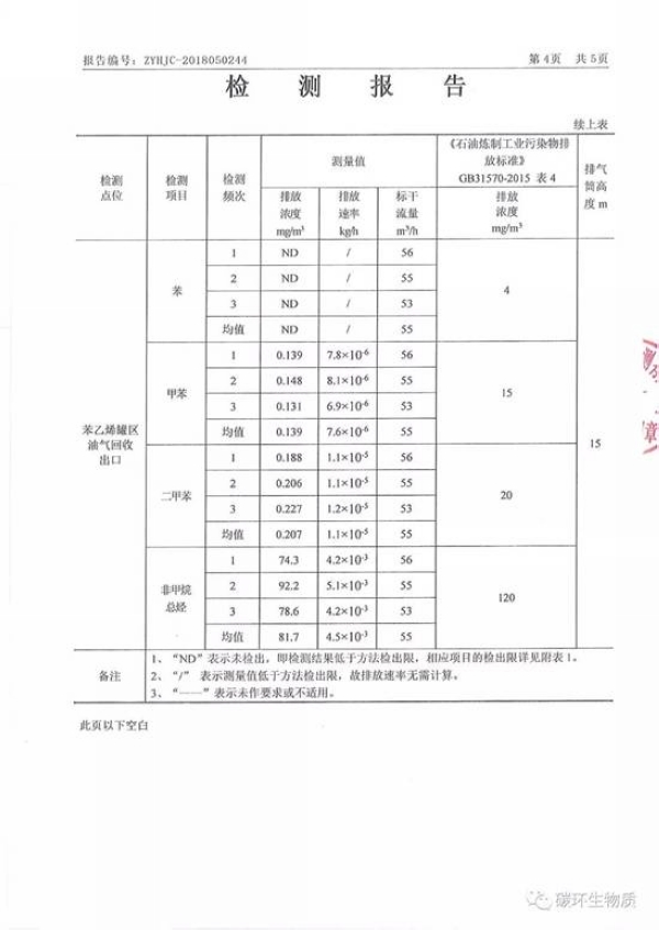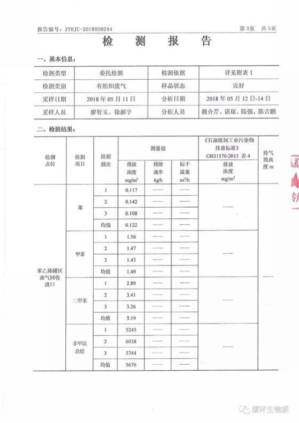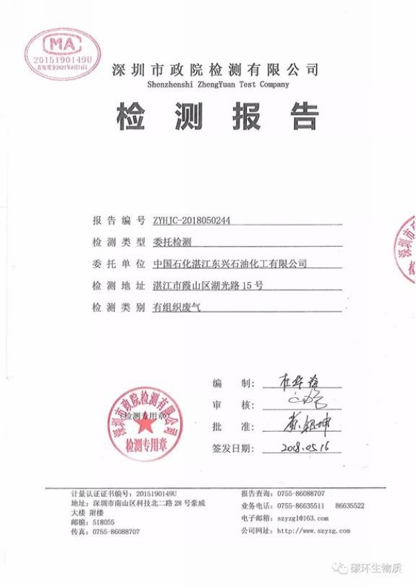 emission of  VOC’s by Using catalytic oxidation. At present, the device is operating by Sinopec Zhanjiang Dongxing Petrochemical Co., Ltd. The emission values of various pollutants have reached  and reach the national emission standards.