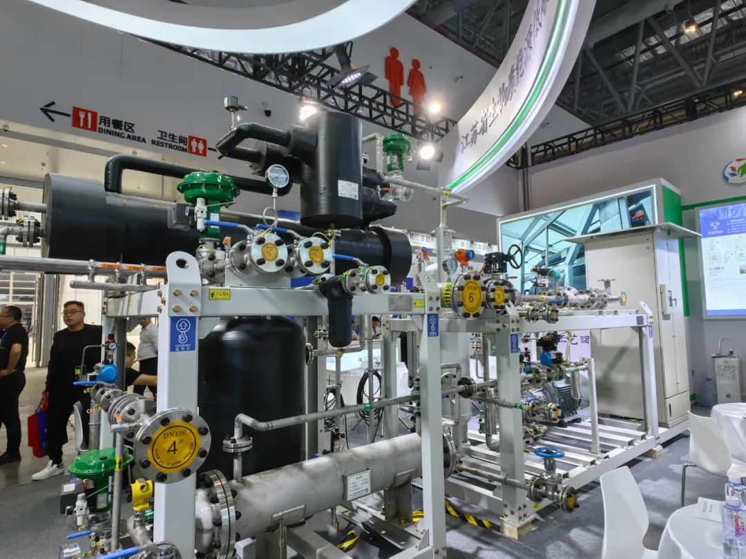 本屆藥機(jī)展,南京碳環(huán)向觀眾隆重推介了VOCs回收與達(dá)標(biāo)治理解決方案——VOCs廢氣處理裝置(壓縮冷凝+膜),采用的“壓縮冷凝+膜提濃”組合工藝根據(jù)來(lái)氣不同物性,分質(zhì)分段治理,設(shè)計(jì)、制造VOCs有機(jī)廢氣回收與治理裝置,其回收率達(dá)到99.8%以上,已被廣泛用于制藥、精細(xì)化工、石油化工、新能源、新材料等行業(yè),大幅度減輕企業(yè)末端焚燒系統(tǒng)負(fù)荷及運(yùn)行成本。