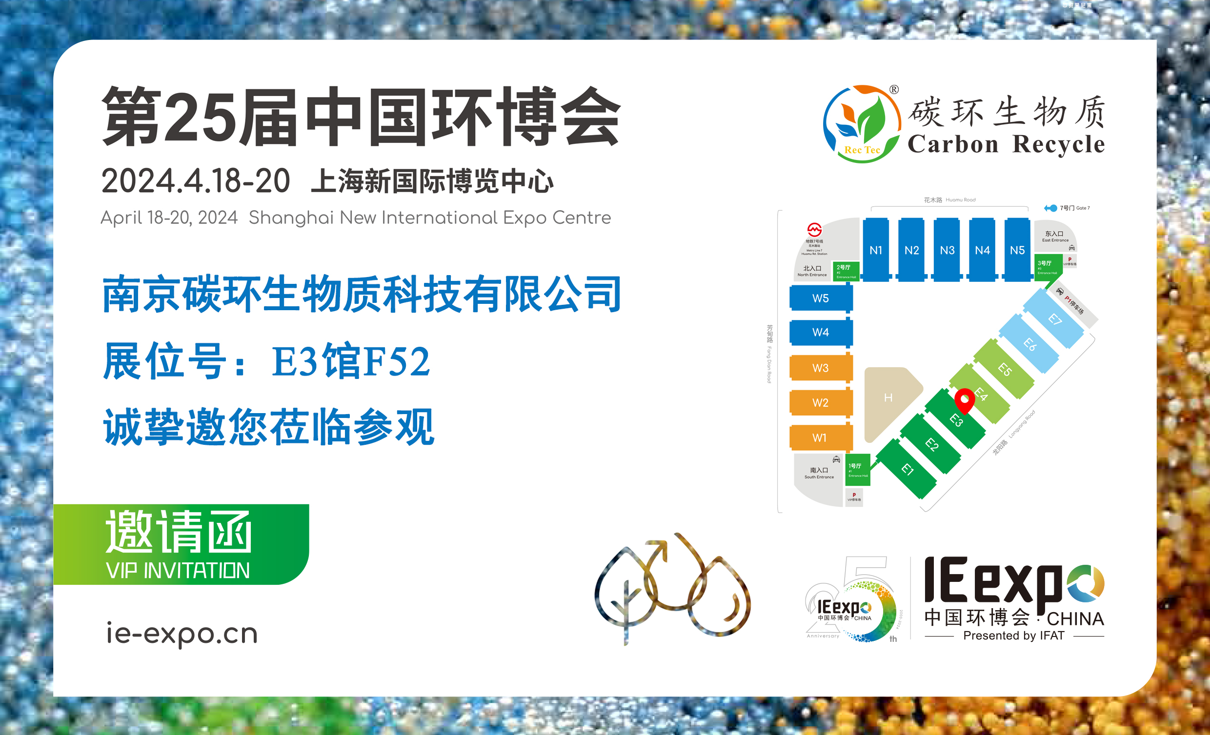 南京碳環(huán)生物質(zhì)科技有限公司將于2024年4月18-20日在上海新國際博覽中心參加IE expo China 2024第25屆中國環(huán)博會,誠摯邀請您蒞臨參觀。